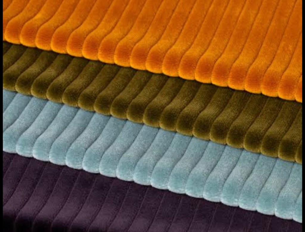 A luxurious, textured fabric that is soft to touch. Can come in a range of different weights and can be used for dresses, coats, pants, upholstery, and soft furnishings.