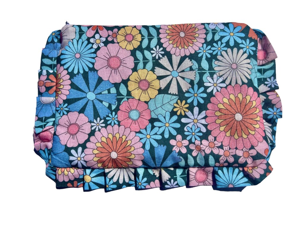 Heres my Ruffle Pouch made from a beautiful floral cotton material as a sewing enthusiast I also love my fabrics!
