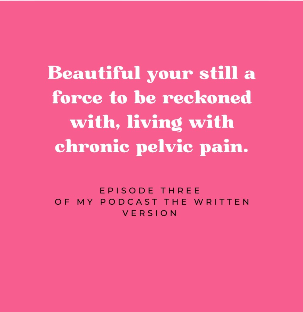 This is a message for the person who has been dealing with chronic pain as a part of your life or a major part of it. Either way you deserve to be told how fierce you are and how much of a force you are in the world, you are not alone we live amongst a community of warrior woman all facing down the same pain everyday and Id like to spread that positivity through my podcast and blog along with insight and raw truth surrounding chronic pelvic pain.