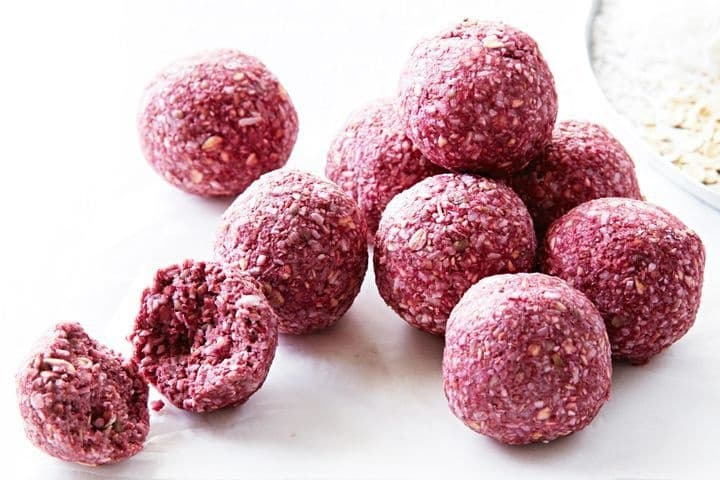 Roll 2-tablespoon portions of the raspberry mixture into balls. Place on a lined tray in the fridge for 1 hour or until set. Store in an airtight container in the fridge for up to 1 week.