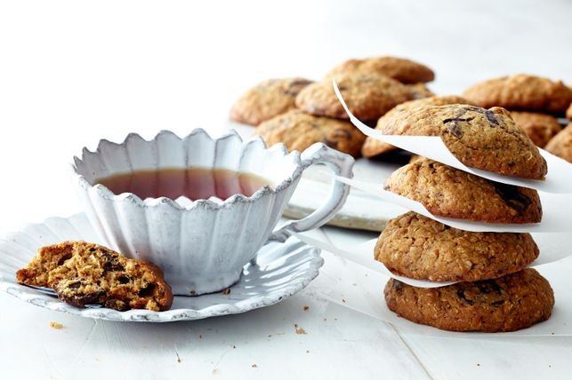 Cream the butter and coconut sugar together until pale and creamy. Add the egg and vanilla and beat until well combined. Sift the flour, baking powder and cinnamon together, add to the butter mixture and beat on a low speed until combined. Add the quinoa flakes, nuts and chocolate, stir until well combined.