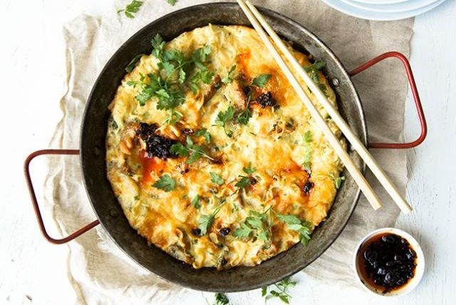 Sprinkle cheese over top of omelette and put under a hot grill until cheese is melted and browned.