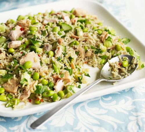 Spread rice over a tray. Sprinkle with half the vinegar mixture. Use a flat-edged spoon to fold the vinegar mixture into rice. Set aside to cool slightly. Fold in seaweed.